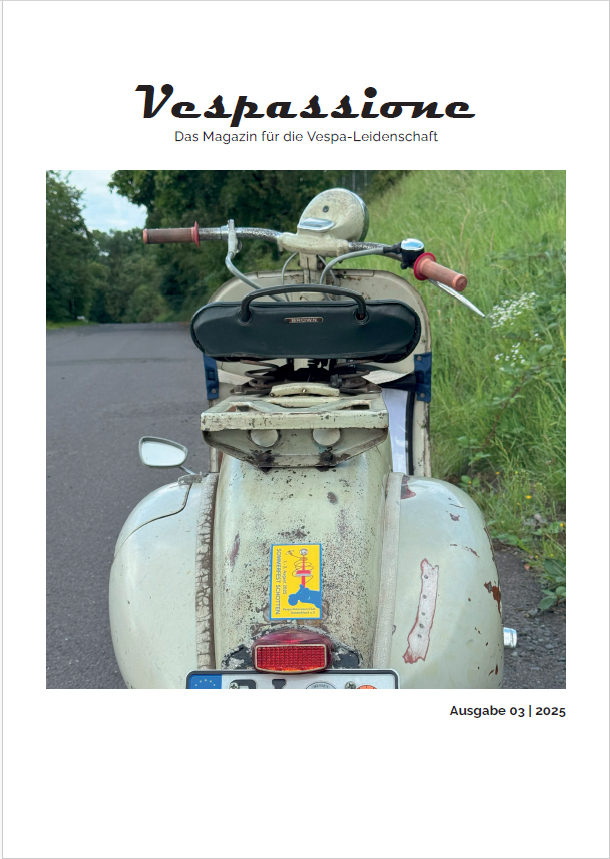 Die „Vespassione“ ist unser offizielles Club-Magazin, das alle Mitglieder kostenlos zugesandt bekommen. Wenn auch Du die „Vespassione“ regelmäßig erhalten möchtest, werde Mitglied im Vespa Veteranen Club Deutschland!